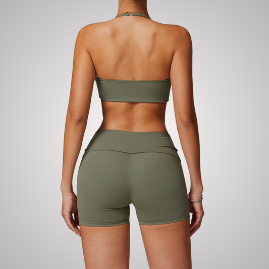 THE ARBOR HALTER SPORTS BRA & SEAMLESS SHORTS SET