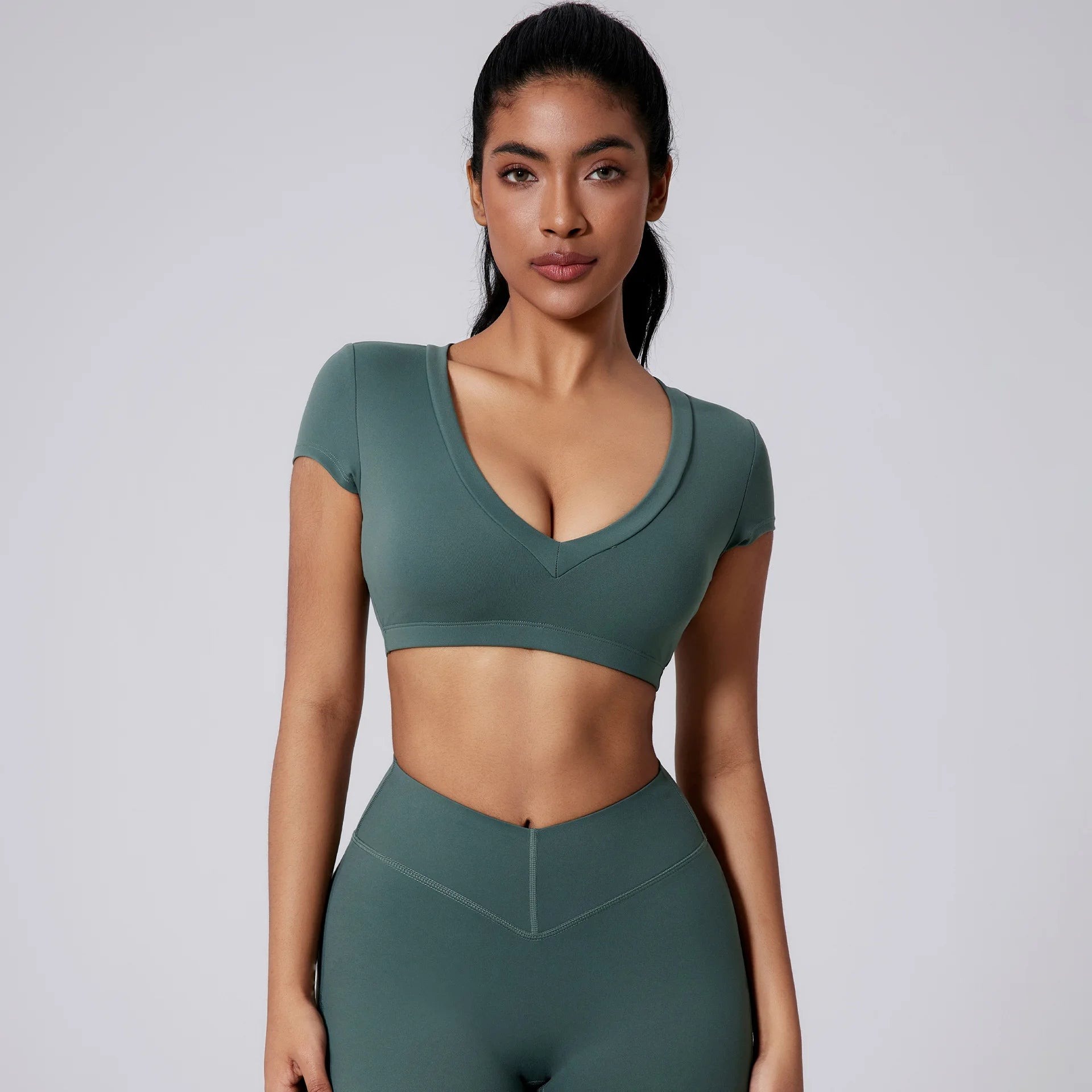 The Fawn Tee brings a sleek cropped fit with a portrait-style keyhole back and V-neckline. Made from breathable, quick-dry nylon, it’s the go-to layer for studio days or street looks.