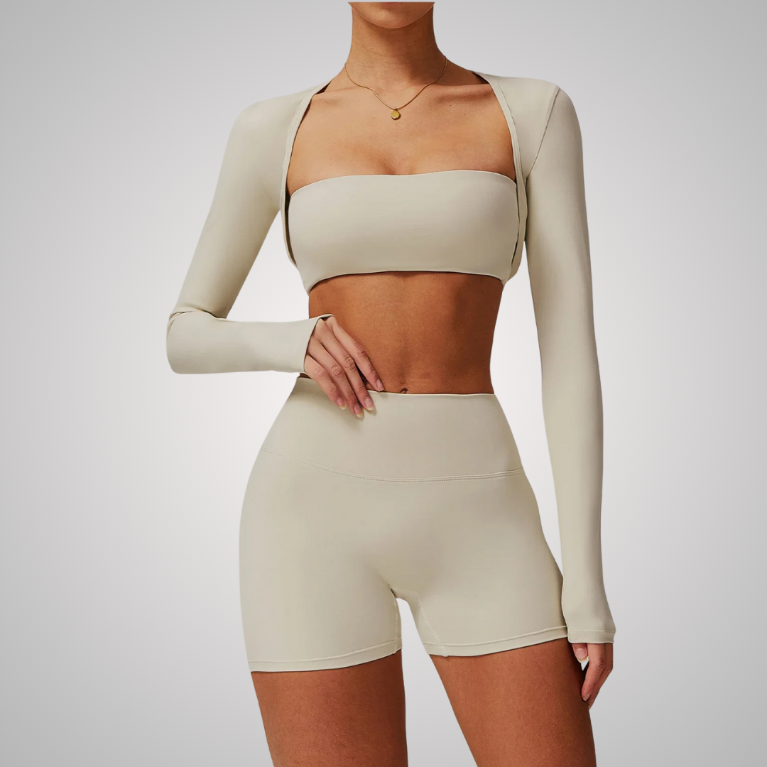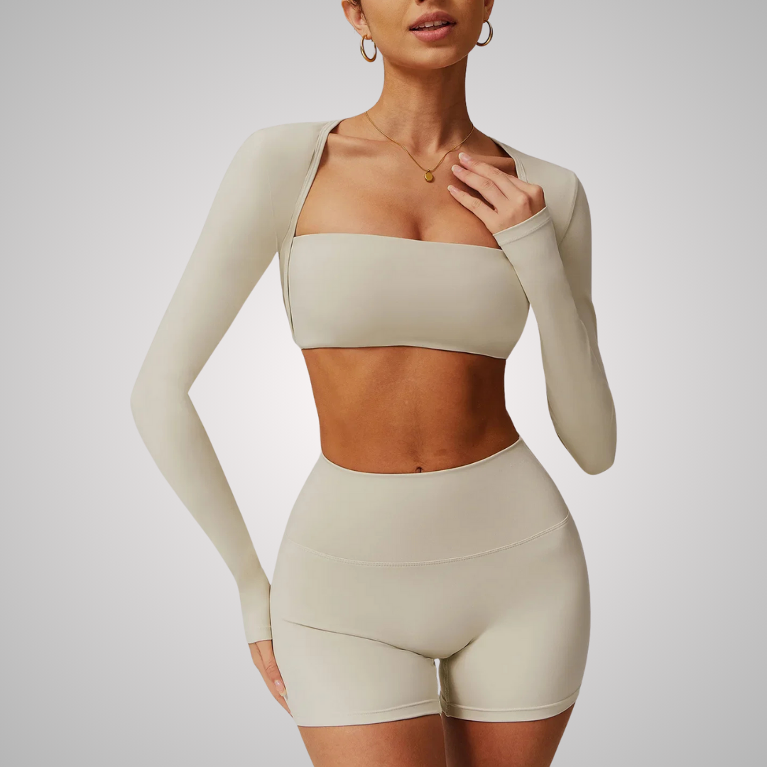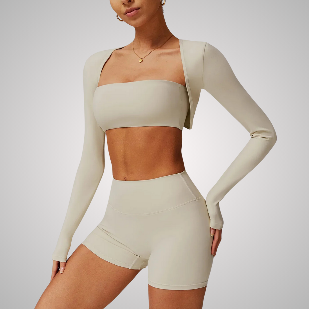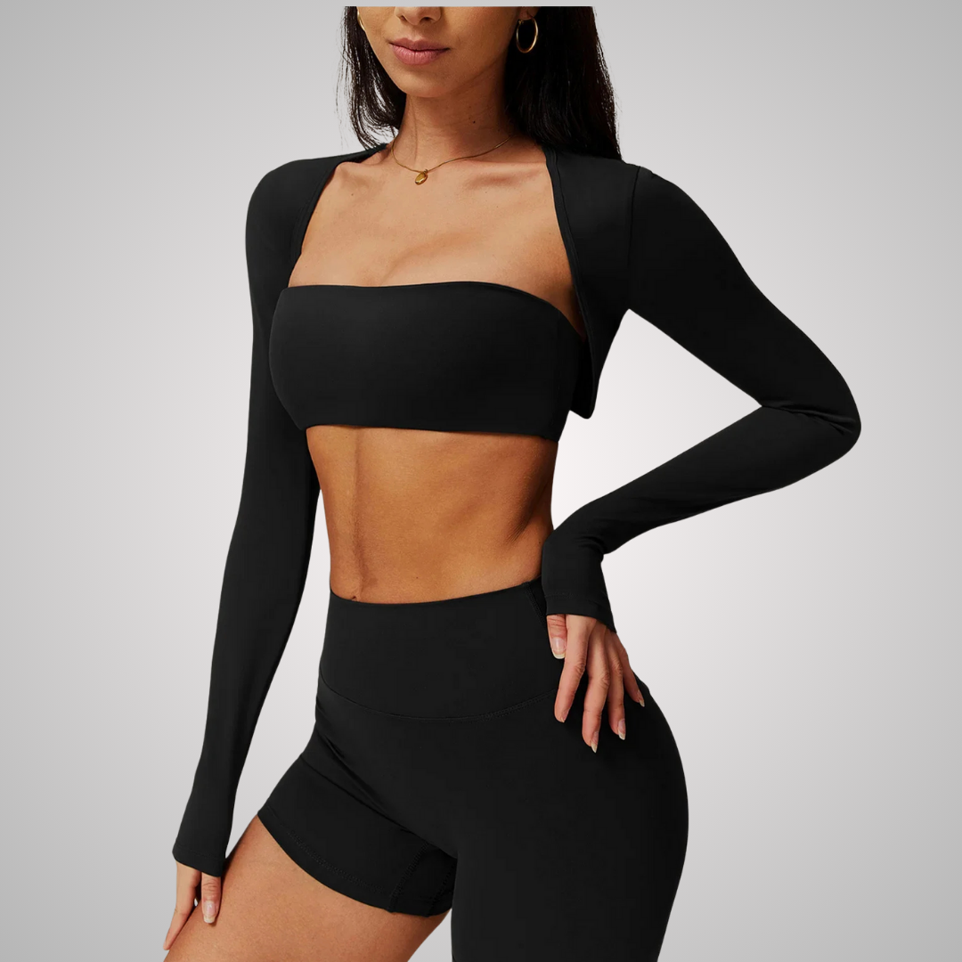 The Orlando Shrug is the perfect lightweight layer — cropped, sculpted, and designed to elevate any set. Built from breathable nylon-spandex, it’s your go-to for warmups, cooldowns, and everything in between.