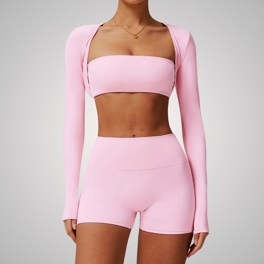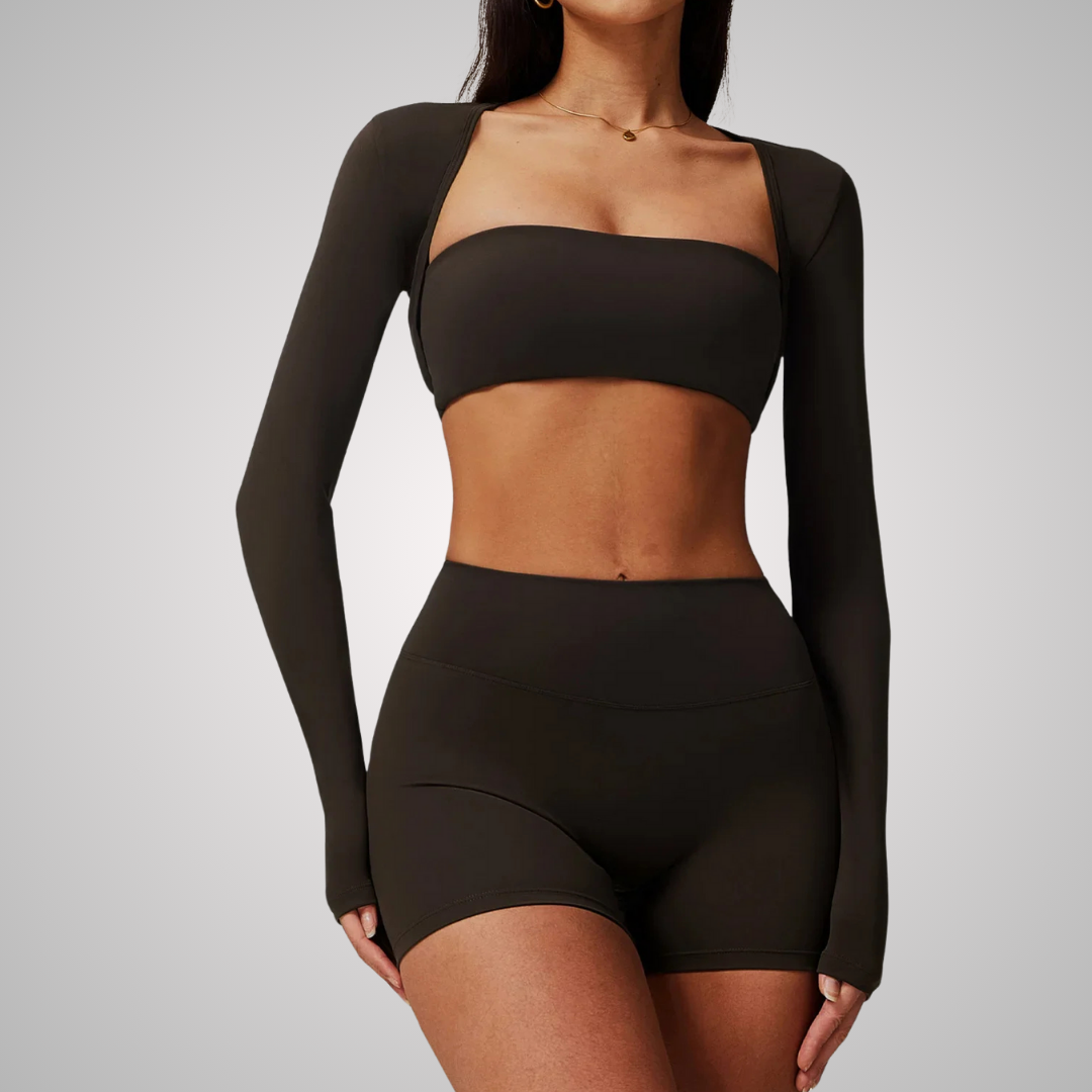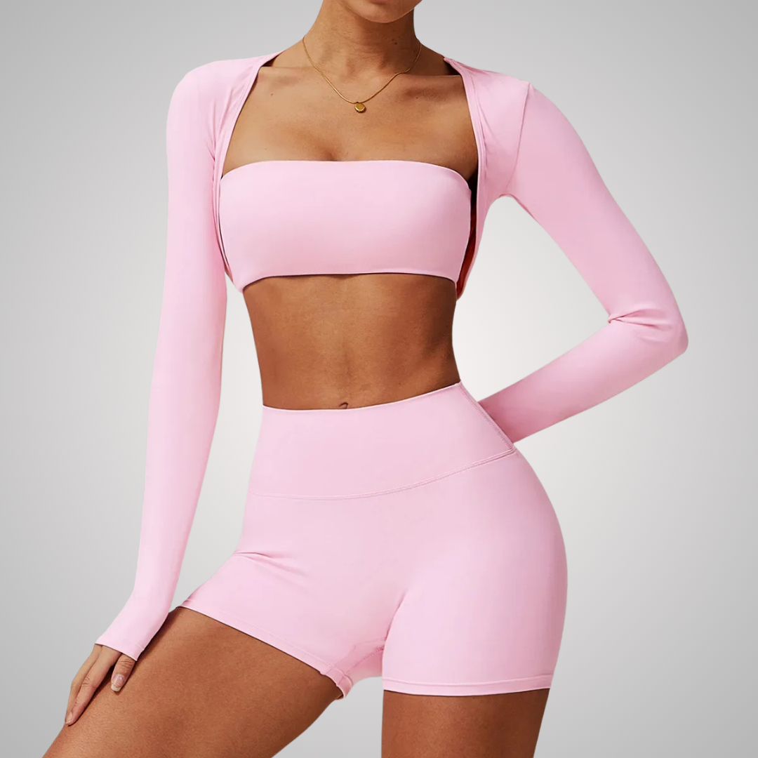 The Orlando Shrug is the perfect lightweight layer — cropped, sculpted, and designed to elevate any set. Built from breathable nylon-spandex, it’s your go-to for warmups, cooldowns, and everything in between.