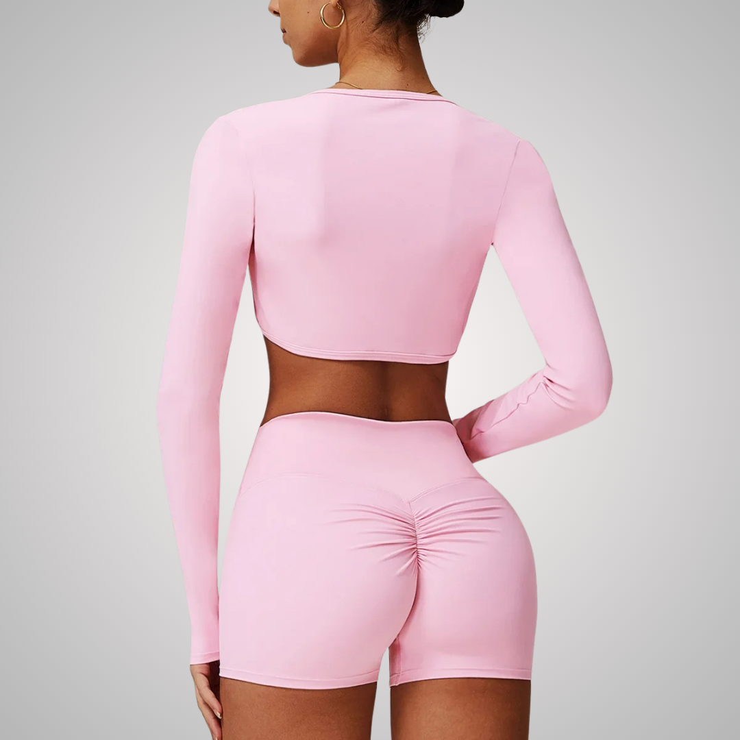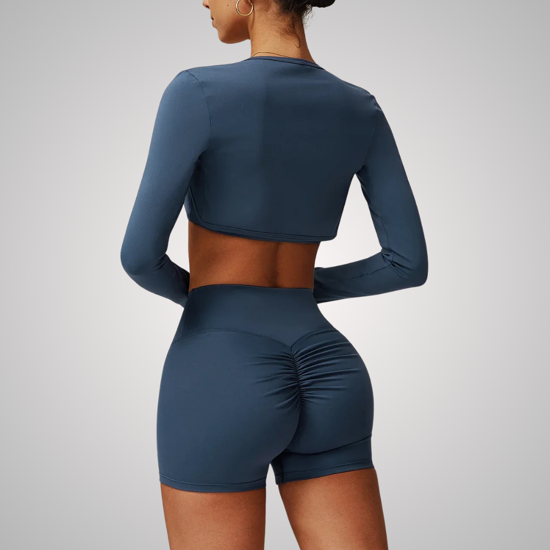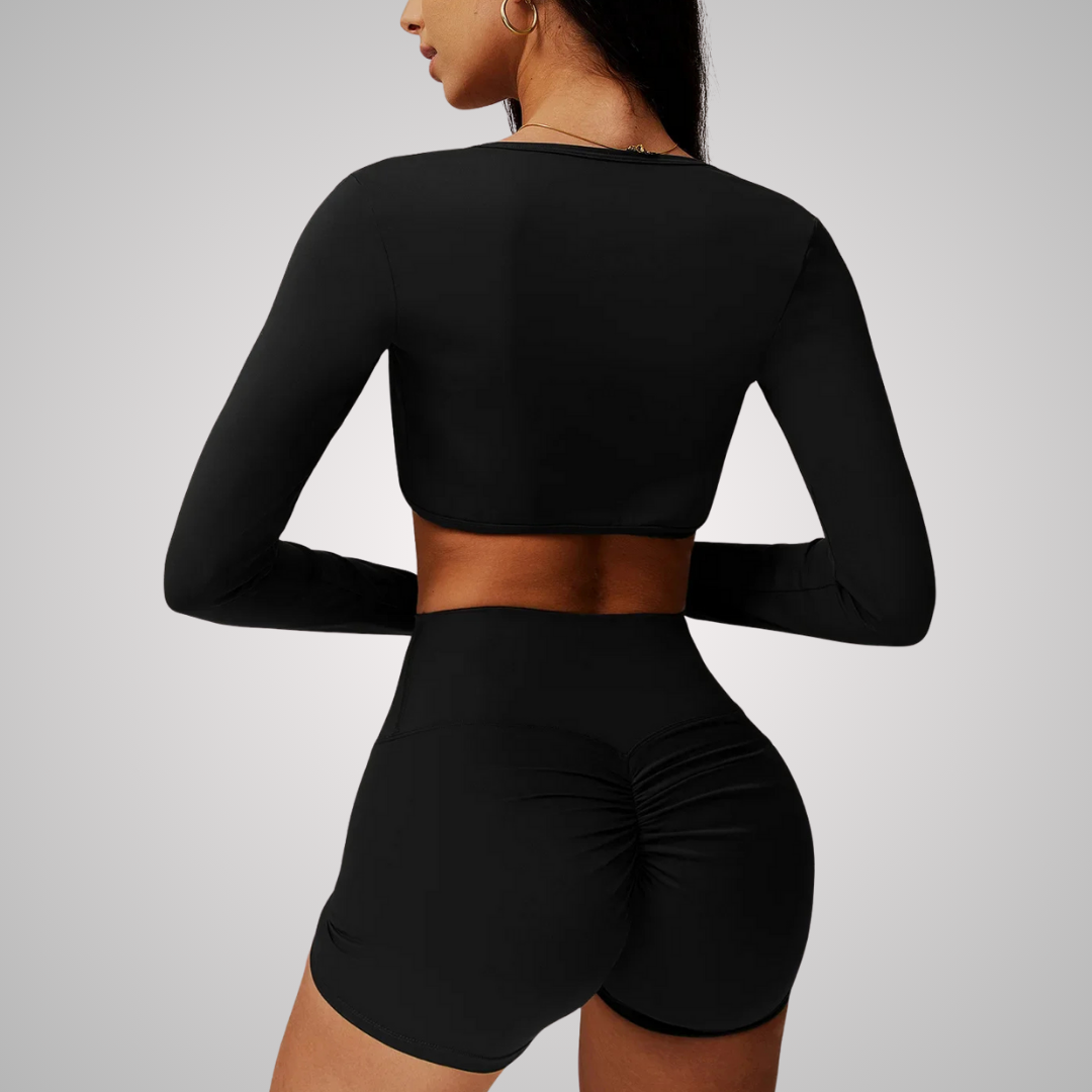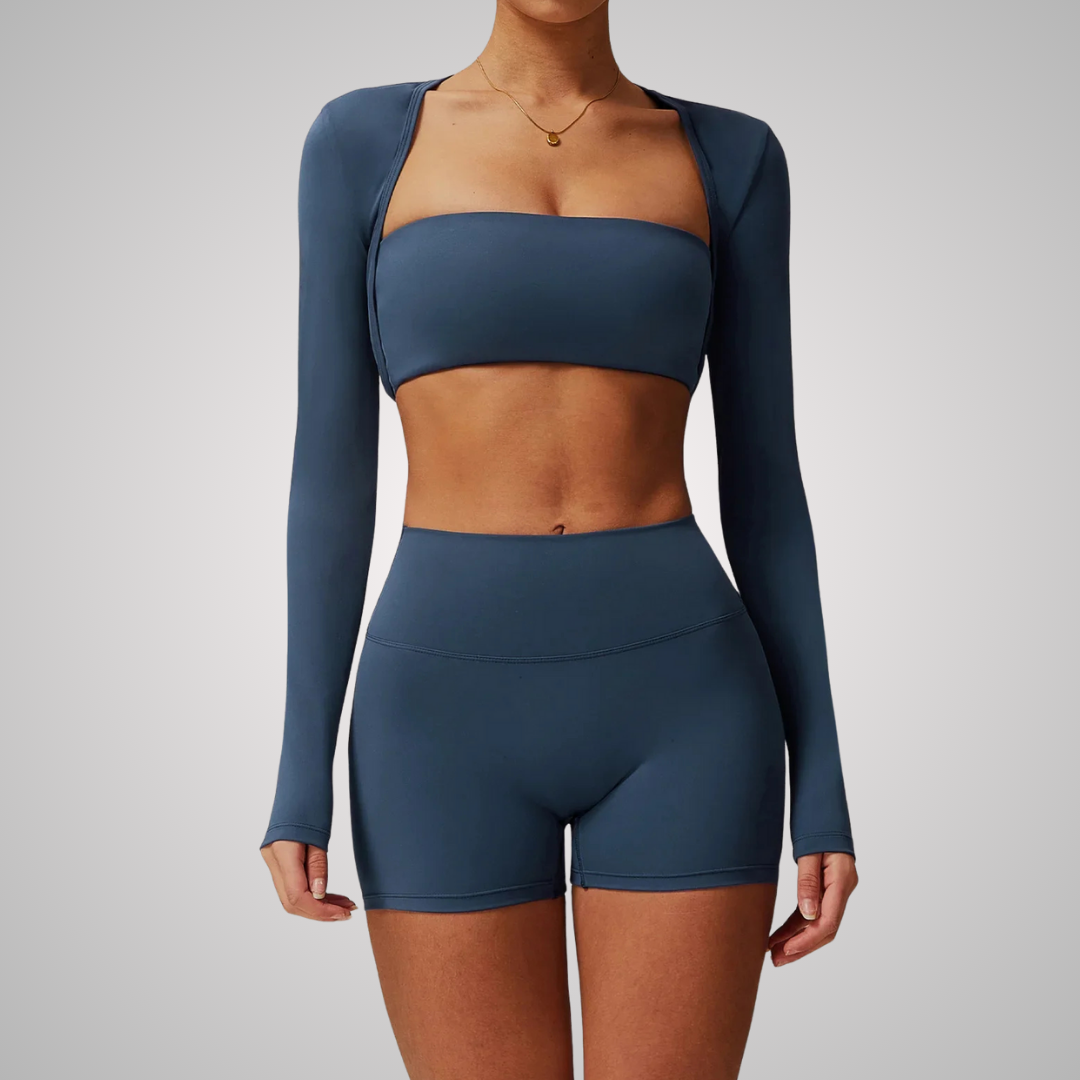 The Orlando Shrug is the perfect lightweight layer — cropped, sculpted, and designed to elevate any set. Built from breathable nylon-spandex, it’s your go-to for warmups, cooldowns, and everything in between.