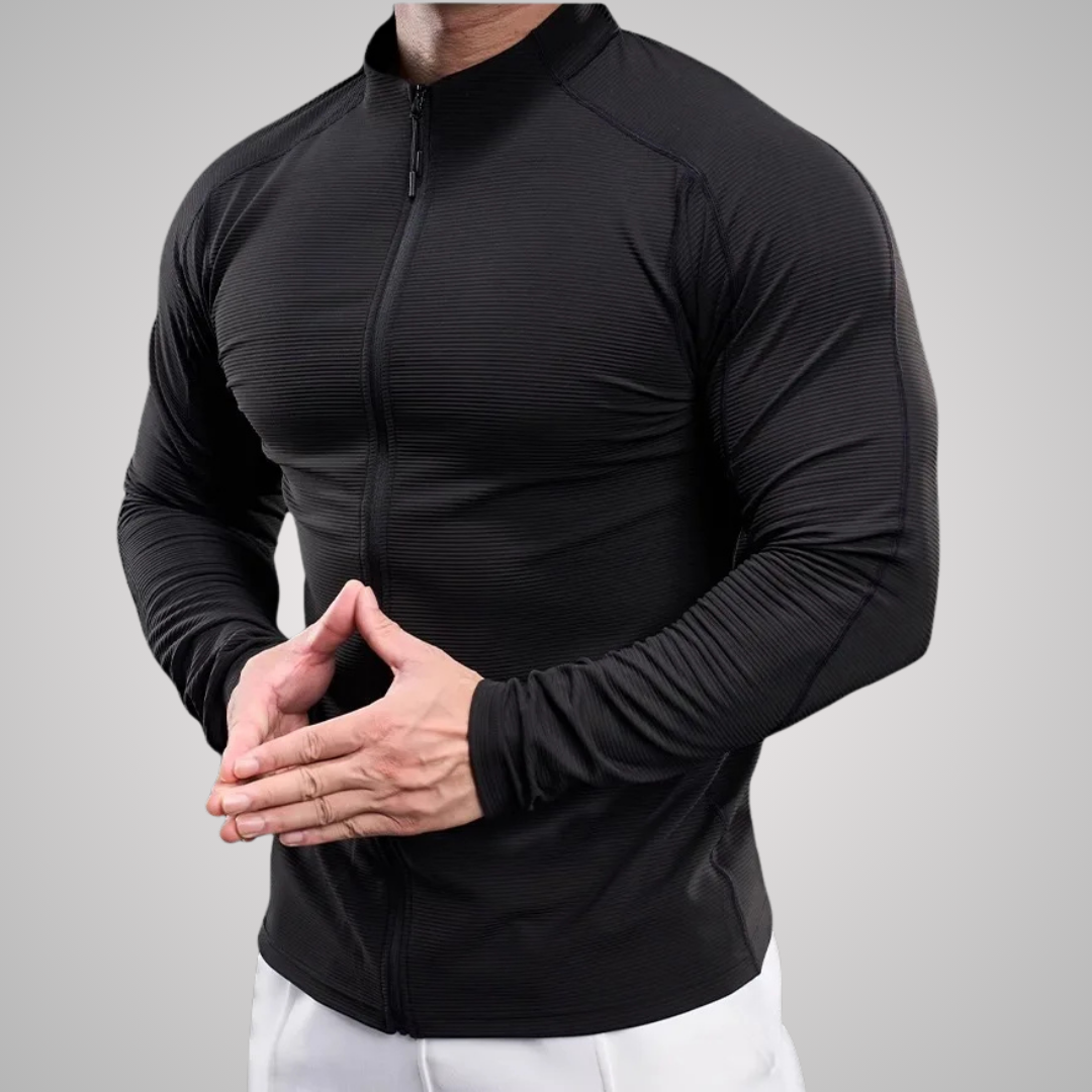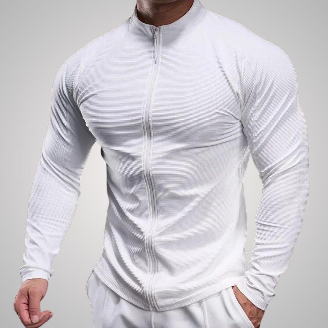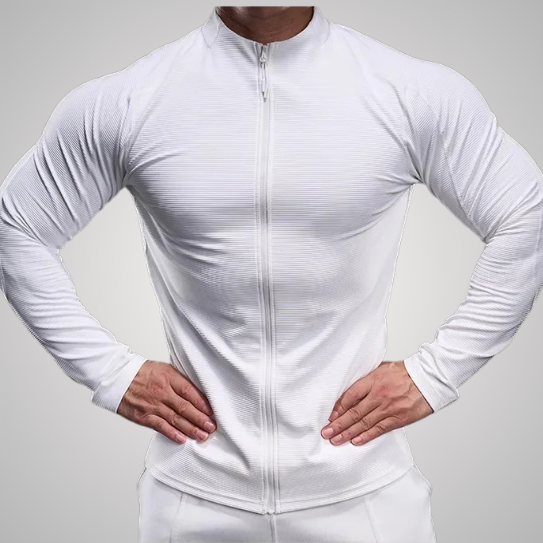 The Charge Jacket is your streamlined layer for warm-ups, cool-downs, and everything in between. Fitted and lightweight, it features quick-dry, breathable fabric with just enough stretch to move with you — no bulk, no drag, just performance.