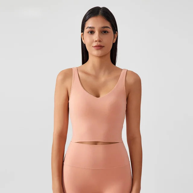 The Solace Singlet combines a naked-feel finish with built-in support for effortless movement and breathable comfort. Cropped and minimal, this V-neck essential is built to move from studio to street.