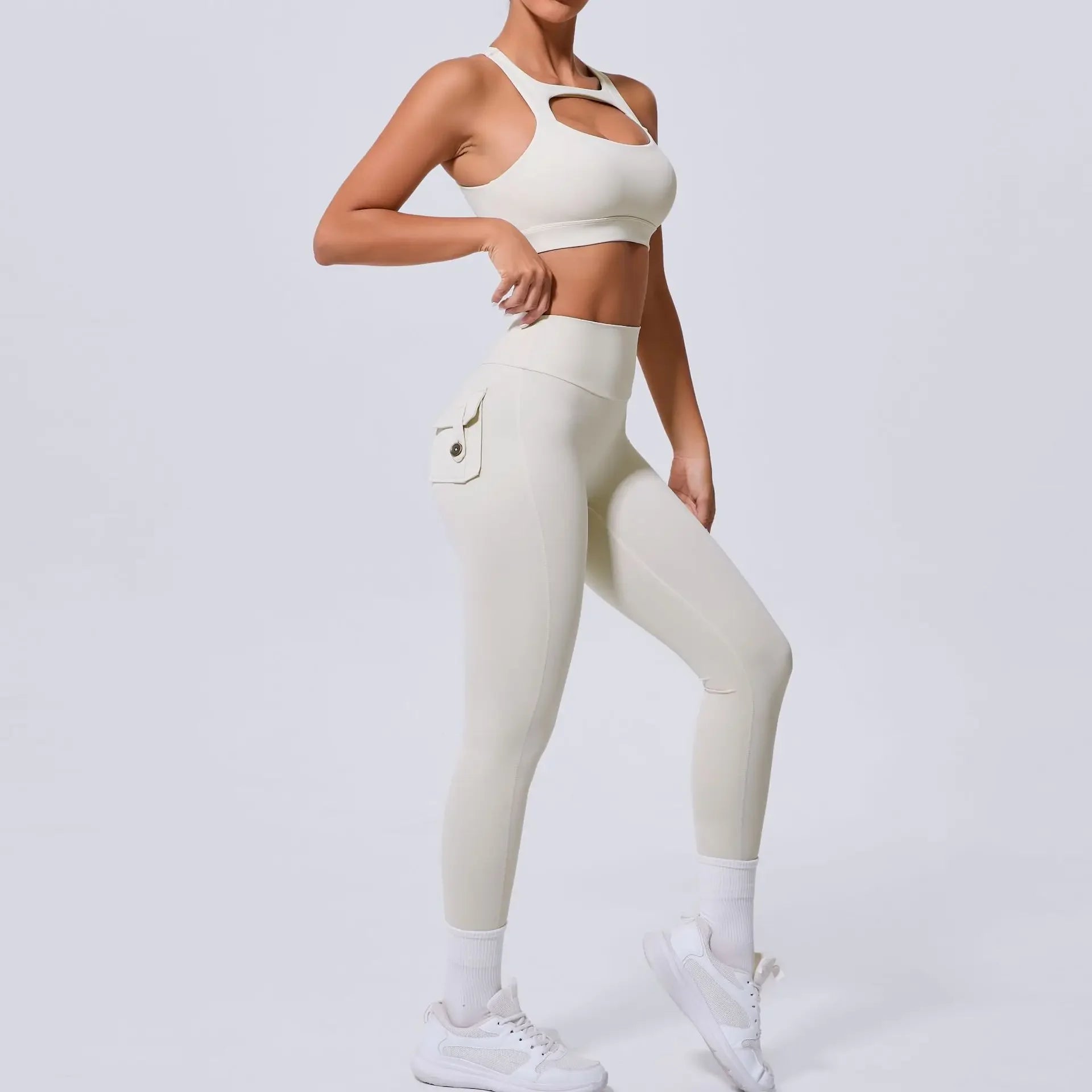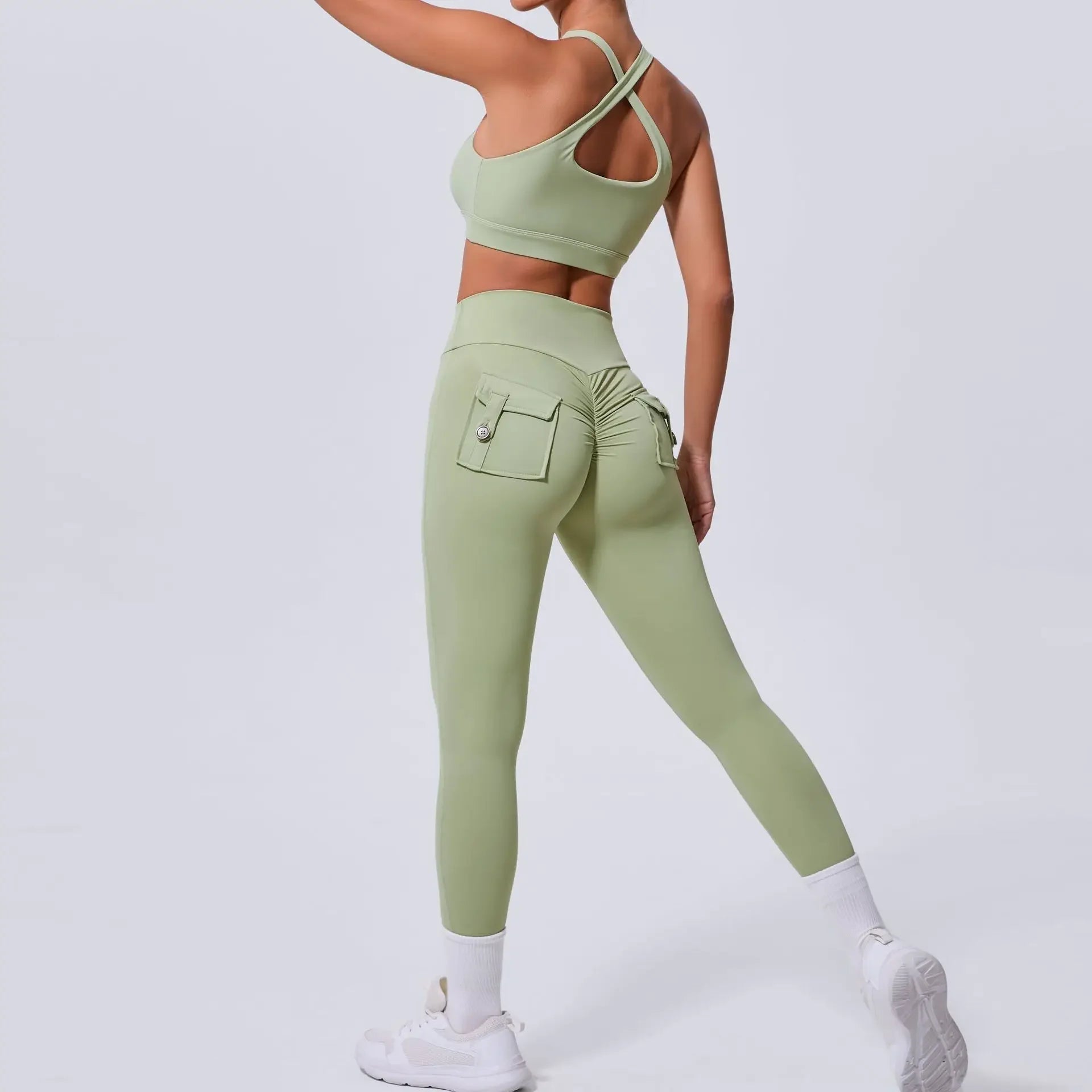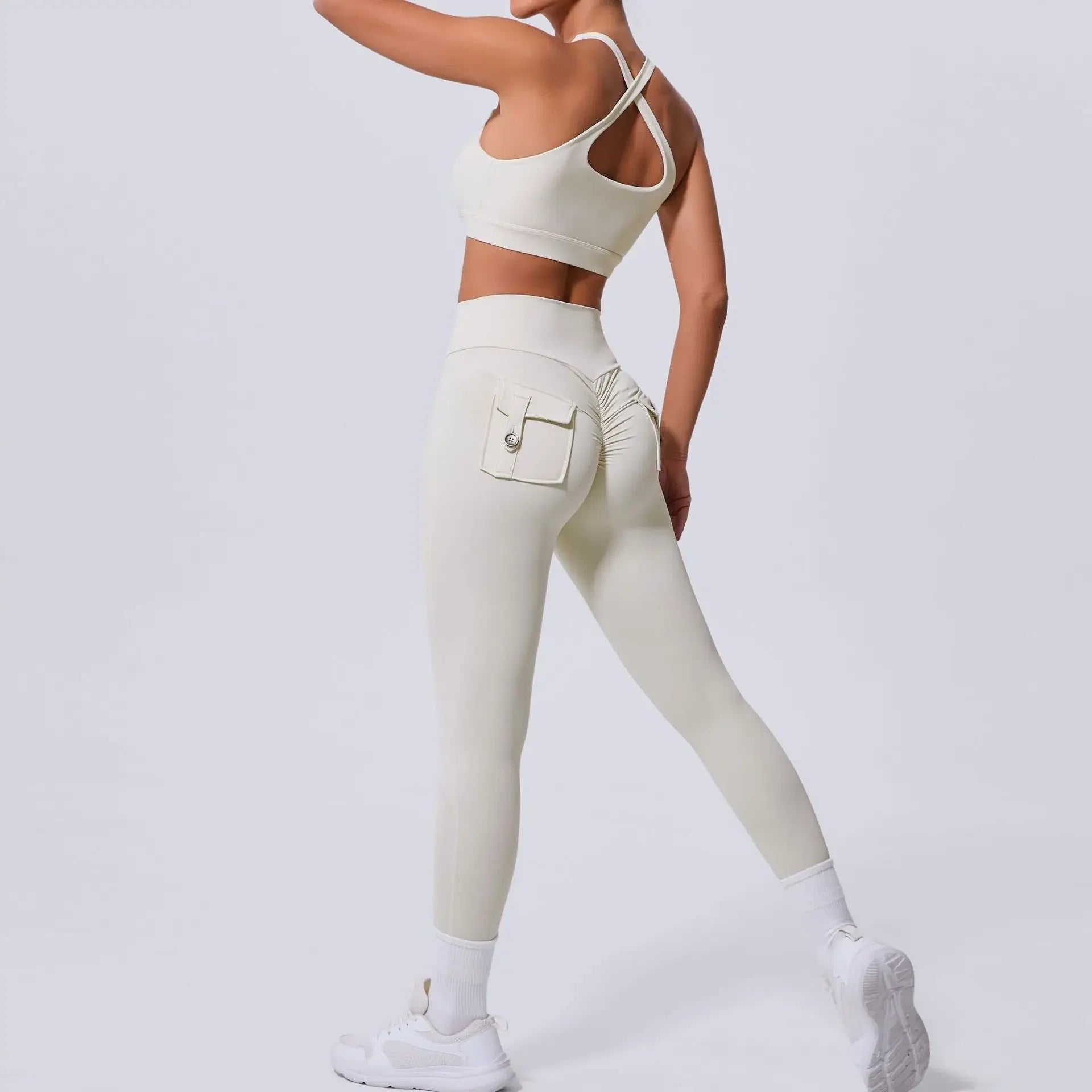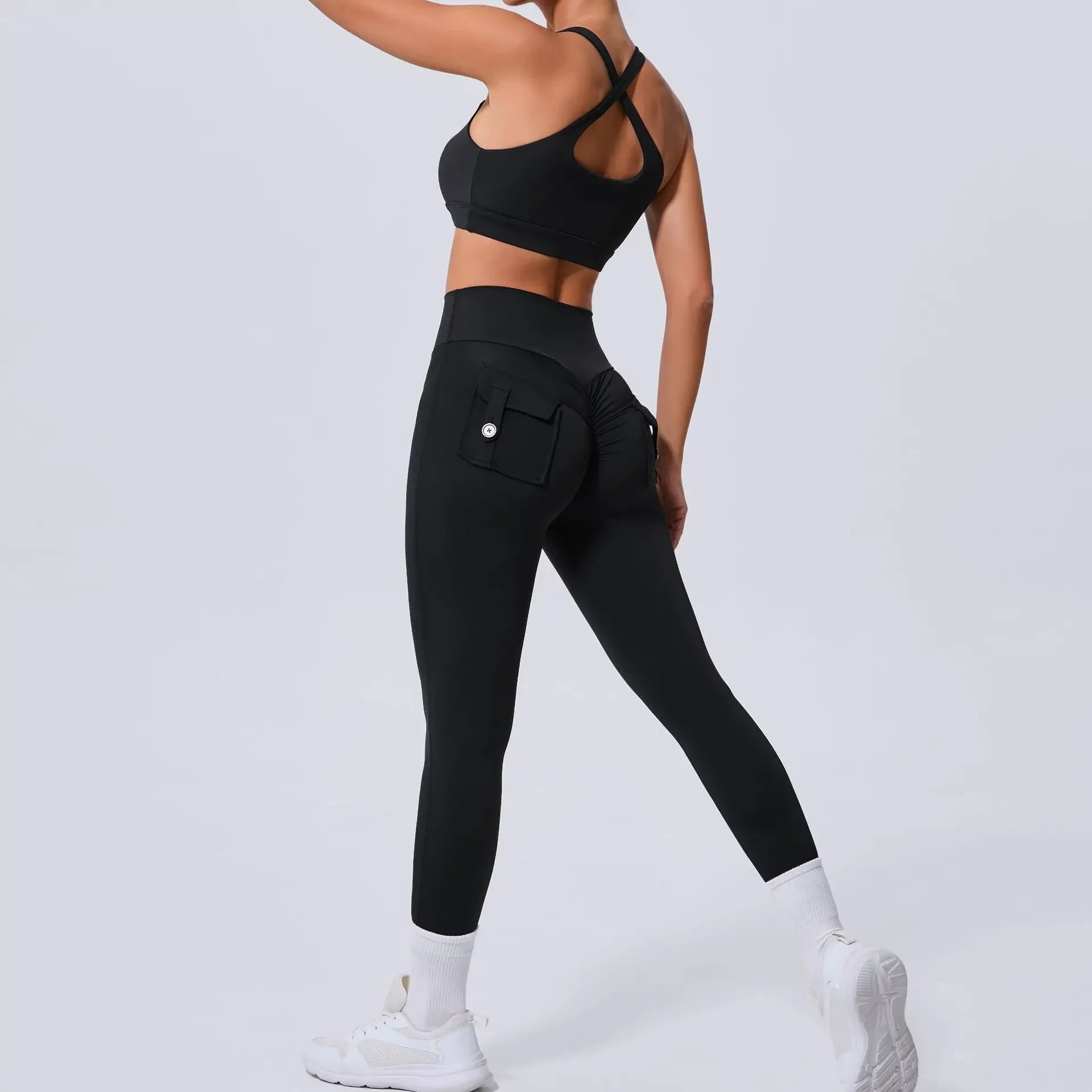 The Pretoria Set blends function and contour with a cross-back sports bra and seamless leggings designed to sculpt and support. Complete with scrunch butt detailing and booty pockets, it's as practical as it is flattering.