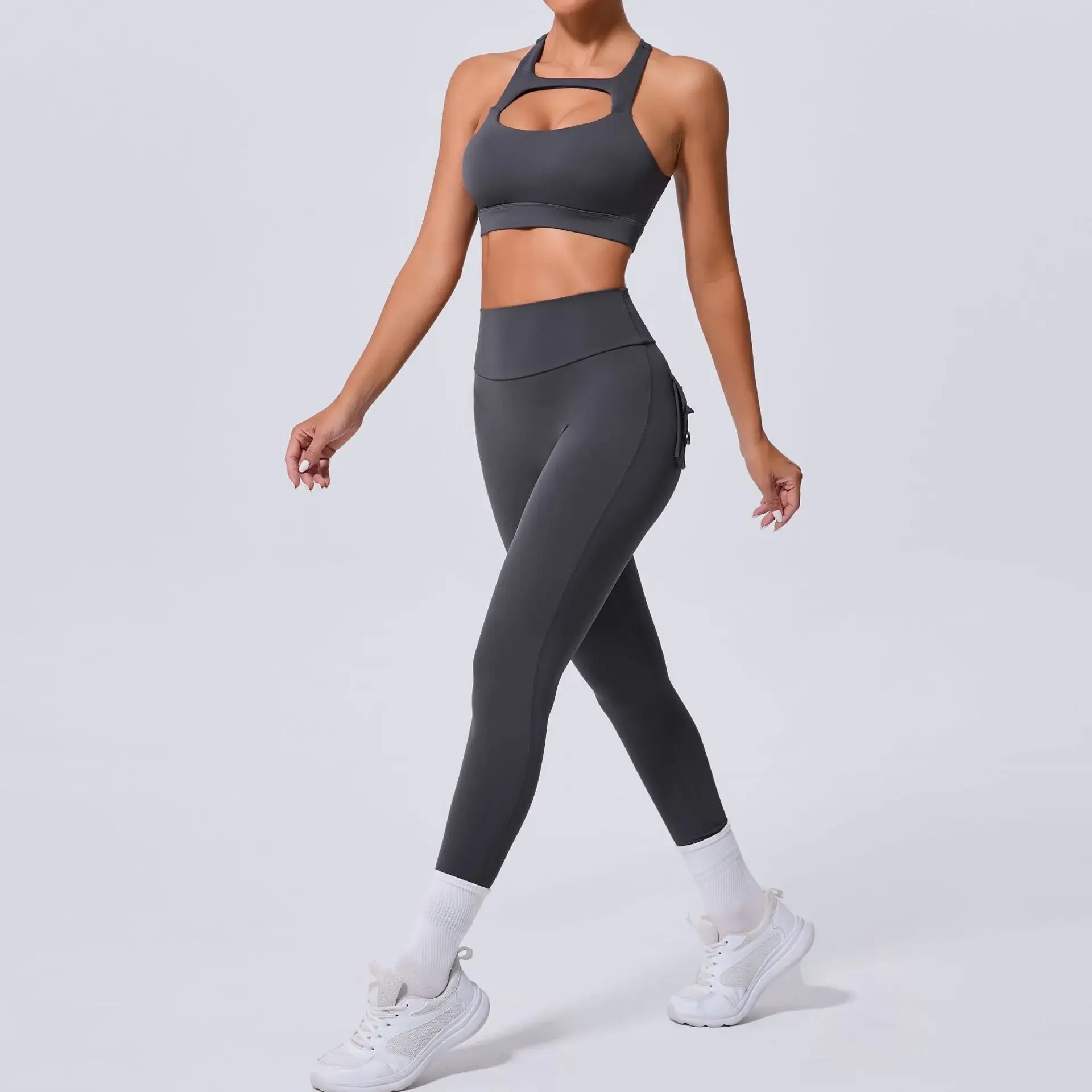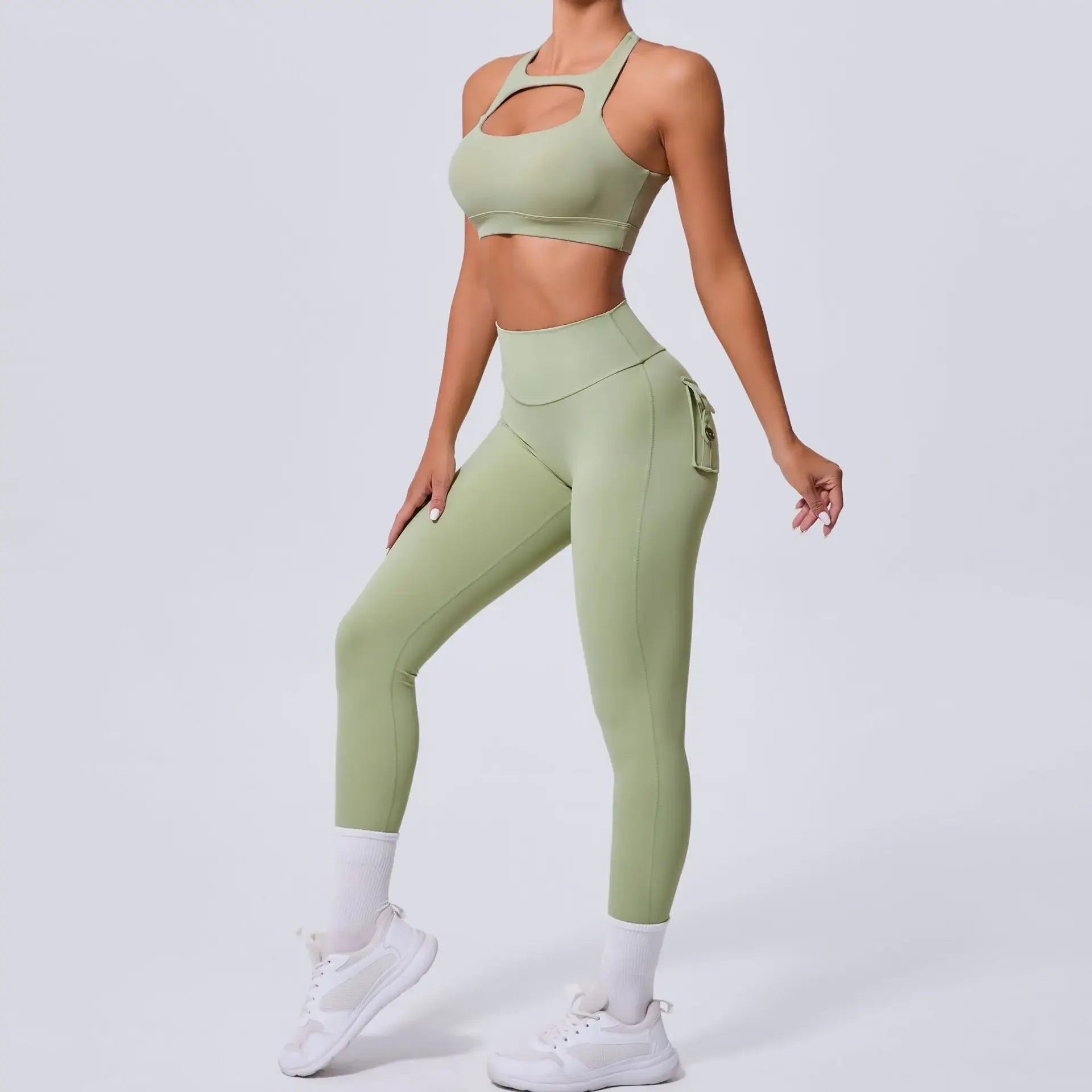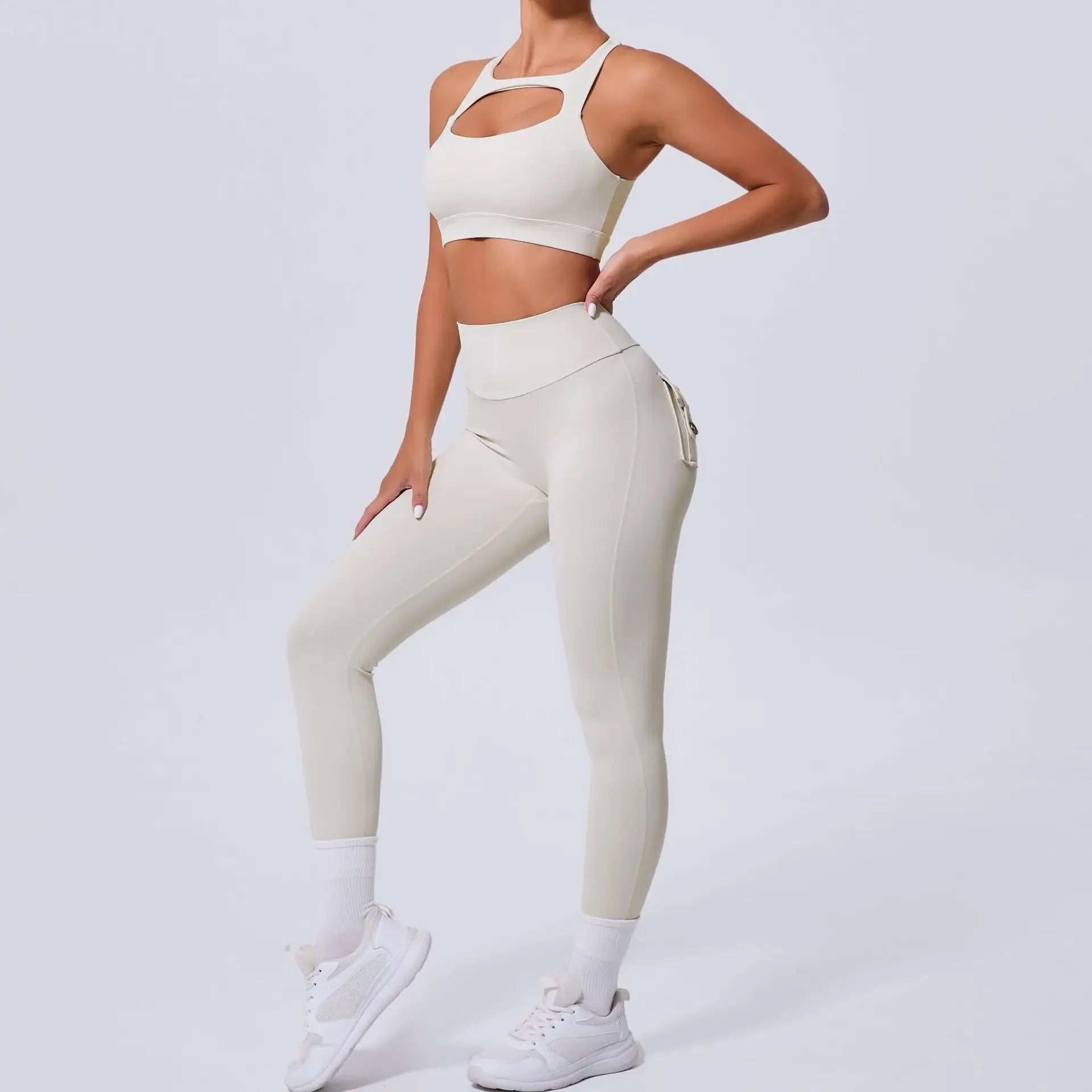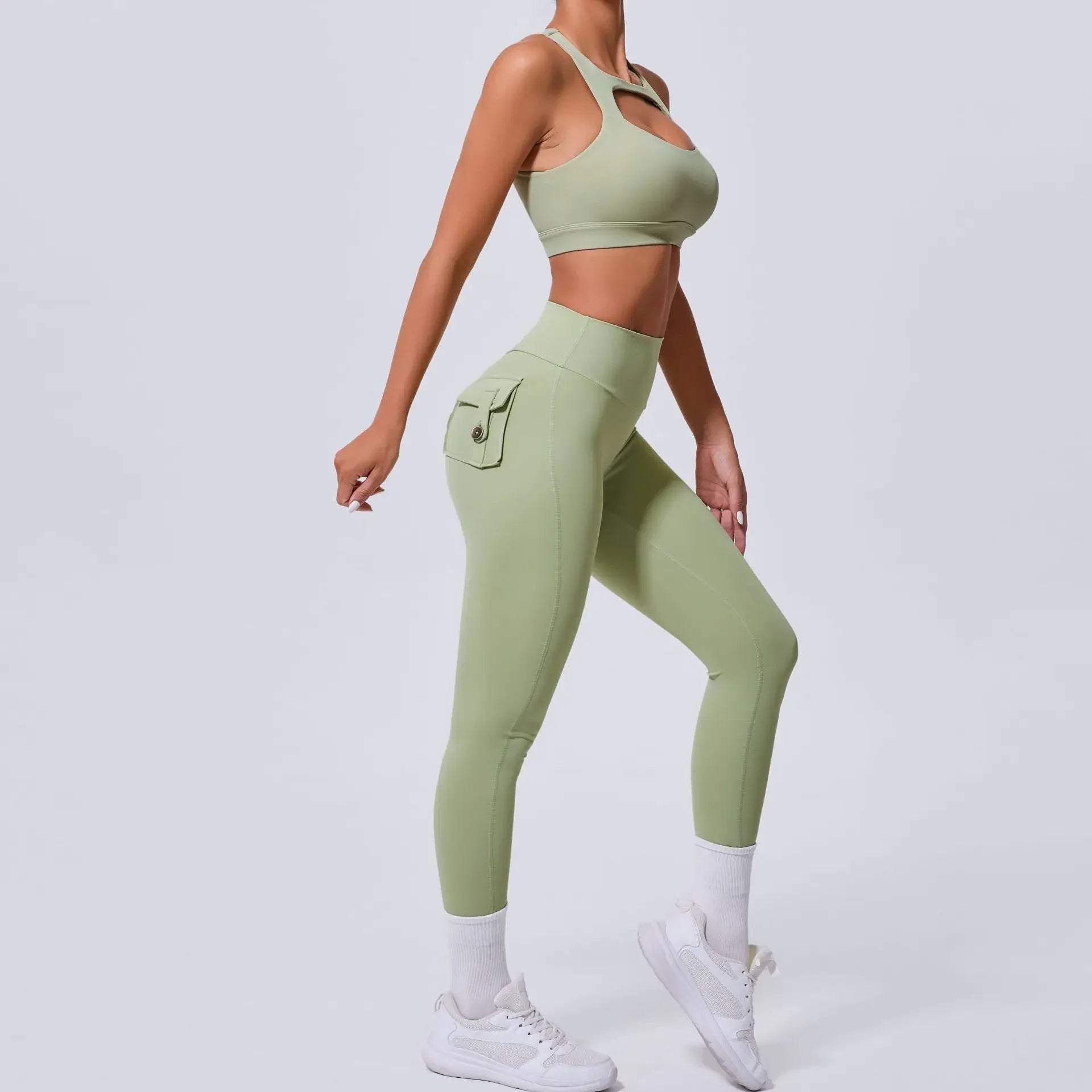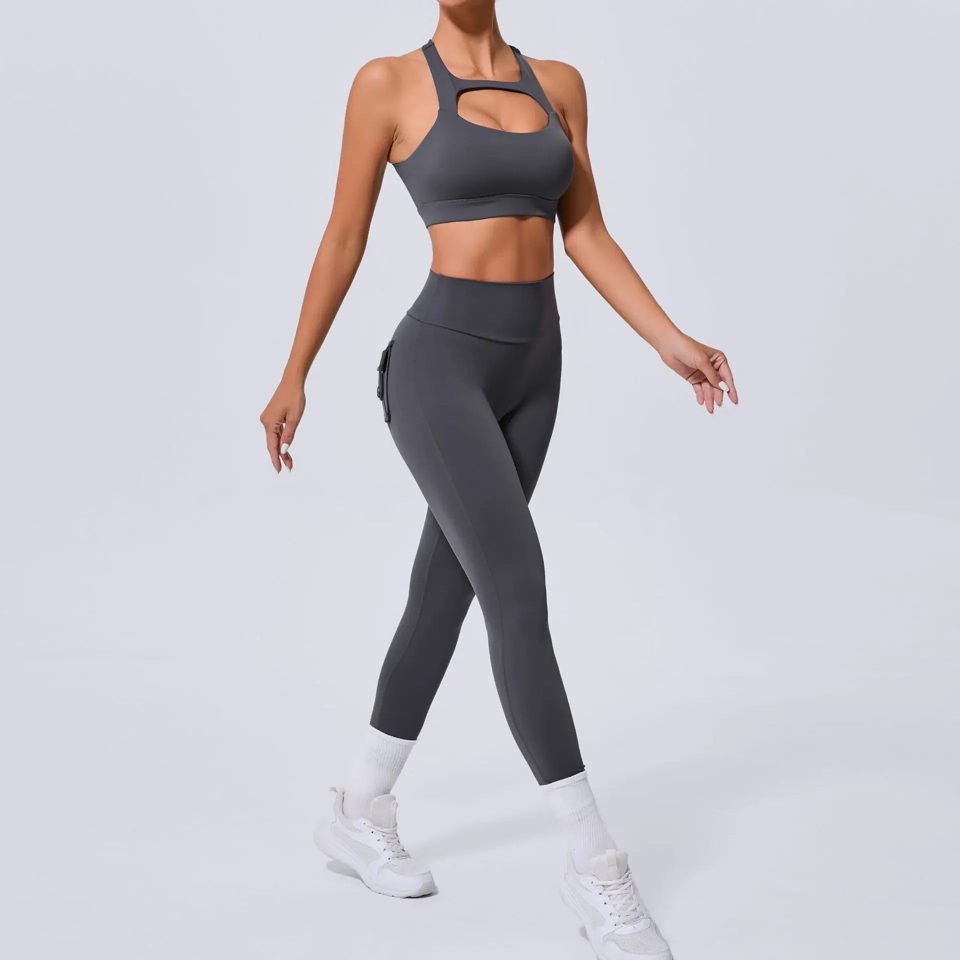 The Pretoria Set blends function and contour with a cross-back sports bra and seamless leggings designed to sculpt and support. Complete with scrunch butt detailing and booty pockets, it's as practical as it is flattering.
